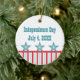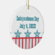 Vibrant and fun Sleek Stars and Stripes Keepsake Ornament featuring chic stripes and a row of five funky and cool stars. This stylish ornament makes a lovely Independence Day themed gift or decoration when customized with your own text! This design is also appropriate for Memorial Day!