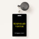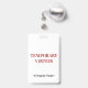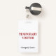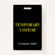 This sleek badge design features the message "TEMPORARY VISITOR", and a customizable company name or other custom message. A badge like this could be used to identify that somebody at a workplace or business is an authorized guest/visitor. [~Z0000307]