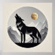 Sleek wolf silhouette howling at a minimalist mountain range under a crescent moon. Monochrome palette (black, white, slate gray) with a single accent color. Clean, sharp lines for a modern look.
