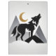 Sleek wolf silhouette howling at a minimalist mountain range under a crescent moon. Monochrome palette (black, white, slate gray) with a single accent color. Clean, sharp lines for a modern look.