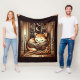 Sleeping Art Deco Style Cat With A Book Fleece Blanket
