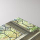 This design features a painting by the British Pre-Raphaelite artist John Collier (1850–1934). It shows a beautiful woman sleeping in a grand medieval castle. Two of her sisters are kneeling beside the bed feeling sad and sorrowful. The bed has intricate engravings and carvings. There are expensive fabrics in the curtains and in the women's costumes. They are clearly wealthy noblewomen. There is stained glass in the windows, and outside there appears to be verdant woodland. The image may represent the fairy tale known as Sleeping Beauty, which is about a princess cursed by an evil fairy to sleep for a hundred years before finally being awakened by a handsome prince. The original artwork was painted by John Collier in 1929.