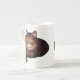 Original fine art design of a sleeping brown tabby by artist Carolyn McFann of two Purring Cats Studio printed on a quality bone china mug for cat lovers.