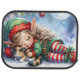 Sleeping Christmas Elf with Calico Kitten Car Floor Mat