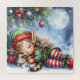 Sleeping Christmas Elf with Calico Kitten Jigsaw Puzzle