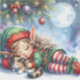 Sleeping Christmas Elf with Calico Kitten Sticker