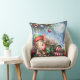 Sleeping Christmas Elf with Calico Kitten Throw Pillow
