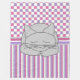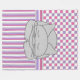 An image of a gray sleeping cat with a smile on it's face against a pink, purple and gray pattern is a unique design for feline lovers.