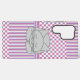 An image of a gray sleeping cat with a smile on it's face against a pink, purple and gray pattern is a unique design for feline lovers.