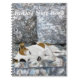 This personalised note book features a Jack Russell Terrier, peacefully sleeping on a blue floral sofa. The name can be changed.