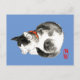 A delicate black and white cat, wearing a red collar, quietly sleeping. The artist, Kōno Bairei, March 3, 1844 – February 20, 1895, was a master of kacho-e painting (depictions of birds and flowers) in the Meiji period of Japan.
