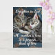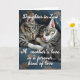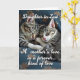 Designed with two small tabby kittens curled close together, this card front shows them asleep with their heads gently touching, like close friends sharing warmth ❤️. Their fur mixes warm gray, soft cream, and deep brown, with dark stripes tracing their backs and paws in tidy lines. Tiny pink noses and a faint rosy tone inside their ears add a sweet, affectionate touch, as if they’ve drifted off mid-cuddle. Long white whiskers fan outward and catch the soft light, making the quiet scene feel tender and intimate. The background is a plush dark teal fabric with a slightly blurred, earthy botanical pattern that reads like a cozy blanket. Near the top, a short message appears in small white lettering, centered and easy to spot without covering the kittens. A second line of text sits lower on the design in the same white color, leaving plenty of breathing room around the artwork 🌼. Gentle shadows fall along their rounded cheeks and tucked paws, and the teal cloth folds softly beneath them.