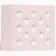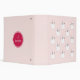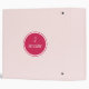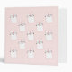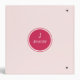 A binder with a custom name and monogram initial inside a pinkish red circle on the back. The front is designed with a cute pattern with sleeping kitty cats all around. Pink background.