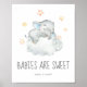 This sleeping little elephant boy babies are sweet enjoy a treat sign is perfect for a simple baby shower. The modern design features a modern and cute watercolor safari zoo animal sleeping on a soft cloud with twinkling yellow stars.