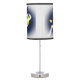 The lamp looks exactly like the picture, bright and colorful. The lamp shade is plastic not what I expected, however I love it! The printing is clear and the name can easily be read.