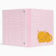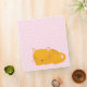 Adorable design features a sweet illustration of an orange tabby kitten taking a nap on a cute pink or blue hearts and paw prints pattern background.