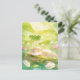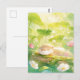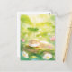 This peaceful postcard features a blissful, sleeping otter napping contentedly on a moss-covered log. The artwork is rendered in a soft, sun-drenched watercolor style, showcasing a vibrant palette of spring green, lemon yellow, and soft white. Towering green leaves and delicate pink and white wildflowers frame the scene, while shimmering light orbs create a magical, ethereal atmosphere. With its serene vibe and lush garden textures, this postcard is a perfect way to send a note of relaxation, a gentle hello, or a touch of sunshine to someone special.