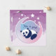 Cute card with a panda sleeping on the moon, white stars and purple cloudy background. On the back, customize the card with your baby's photo and birth info.