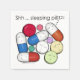 An image of a cute colorful bunch of pills or medication with sleeping faces on them. The caption above reads, "Shh ... sleeping pillzzz". Would be great to use in a bedroom, doctor’s office, psychologist’s office, or anywhere pills would be sold or used. Funny pun illustration created by Christie Black of Creations from the Heart.
