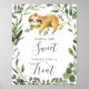 Give your guests a lovely direction with our sleeping sloth babies are sweet please take a treat sign, featuring watercolor greenery eucalyptus garland and elegant handwritten style font.