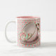 The cutest little mouse dressed in a sweater and a little hat .. asleep in a tea cup on a pink patterned background ..cute mouse themed products from Ricaso