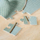 The cutest little mouse dressed in a sweater and a little hat .. asleep in a tea cup on a green patterned background .. mouse products from Ricaso