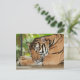 This postcard features a photo of a cute sleeping tiger.