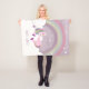 A fleece blanket featuring an illustration of a baby unicorn sleeping on a bed of clouds surrounded by stars and a rainbow over a purple watercolor inspired background.