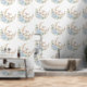 Sleepy Bunny Rabbit Moon Blue Floral Nursery Wallpaper