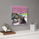 This wall clock shows a sleepy tabby cat with a freckled pink nose, white paws and white chest. Along with this adorable cat is the Bible verse Psalm 4:8 which says, "In peace I will lie down and sleep, for you alone, Lord, make me dwell in safety." A beautiful wall clock for every cat lover.