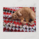 A ginger kitty sleepy lies on a quilted blanket as photographed by Angelandspot in the year 2026