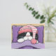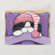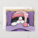 Whimsical cat art postcard. A sleepy black and white cat tucked up in bed. The Cat is wearing a pink and white striped night cap. Created from an original painting 2008 Lisa Marie Robinson