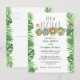 Are you preparing for a jungle-themed baby shower? Then we've got the perfect invitation for you!. This invitation features "It's A Boy!" in bold typography with 4 adorable sleepy jungle animals in a line; a giraffe, a koala, a lion, and a monkey. The design is bordered on both sides with green leaves. To customize the design, simply click the "personalize" button and write in your own details.