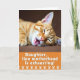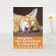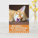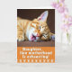 This design shows a close-up of a relaxed house cat caught mid-yawn, lounging against a soft, dark brown background that fades gently out of focus. The cat’s fur is warm ginger with creamy stripes, and the closed eyes give it a trusting, cozy look, like it’s completely at ease with someone nearby ❤️. Its mouth is wide open, showing a bright pink tongue and small, sharp teeth, adding a touch of gentle humor to the scene. Soft, diffused light highlights the fine fur texture and long white whiskers spreading from its cheeks. One paw sits in the foreground with plush pads and clear striping, as if it’s reaching out in a quiet, friendly way 🌼. Along the lower third, a solid orange banner runs across the card with white text centered on it. A neat row of small white paw prints lines the banner beneath the lettering.