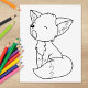 Cute little fox with big ears and bushy tail is yawning sleepily. Suited for coloring.