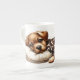 This charming Sleeping Puppy in Pajamas Bone China Mug will add a touch of whimsy and delight to your daily tea or coffee routine. The adorable graphic of a sleeping puppy curled up in cozy pajamas is sure to make you smile every time you take a sip. Personalize it with your name or the name of your furry baby. Crafted from fine porcelain with subtle design details like a fluted rim and curved handle, it complements both casual and formal table settings. Give one as a gift to brighten a friend's morning ritual.
