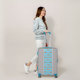 The luggage itself is awesome. So much utility for a carry-on bag. Lots of zippered pouch compartments to keep everything from getting everywhere. And it has a TSA approved lock and a dust cover! Love it. The printing is terrific. Love the way it wraps around the top and bottom. So happy the bumpers, wheels and handle color matches the design perfectly. She's gorgeous.