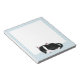 Custom notepad featuring an adorable illustration of a cute bicolor cat taking a nap on a hearts and paw prints pattern background.