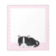 Custom notepad featuring an adorable illustration of a cute bicolor cat taking a nap on a hearts and paw prints pattern background.