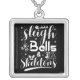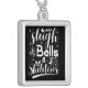 Sleigh bells & skeletons dancing funny christmas silver plated necklace