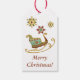 This holiday gift tag features nostalgic images of a sleight and snowflakes from Christmas past. Colors include brown, mint green, cranberry red, and gold. The image is placed on a snow white background, and repeated on the back of the tag. Your custom text is in cranberry red on each side. This tag matches the Dashing Through the Snow Christmas Images gift wrap paper in our store. *Clip art used in this design is copyrighted by Encore Software, Inc., which permits use to its licensors. All rights reserved.