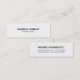 Clean, basic mini business card. Slender, minimal, high contrast design of black (and gray) text on white background. Simple, no nonsense skinny mini business card.