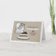 Slice of Cake card features a delicious piece of chocolate cake topped with a red cherry, all on a grey plate. Yummy! Personalize with your photo. Ideal for birthdays. © Morning 6