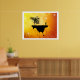Enjoy this abstract silhouette image of a person traveling through a colorful and clouded space, on a landmass referred to as a slice of earth.
