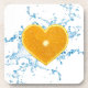 Heart-shaped slice of orange fruit with water splashes on a white background.