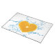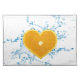 Heart-shaped slice of orange fruit with water splashes on a white background.