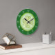 Fresh slice of pickle cucumber in a graphic design wall decor clock with a closeup of a sliced open view. This delicious kitchen wall clock will bring a splash of green and slice of food to any room kitchen to decorate in your home. Use as a home accent or home decor piece to add a little primary color to your kitchen, living room, or kids room.