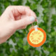 Painting of a slice of ripe pineapple is printed on custom keychains. The background color can be customized.