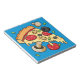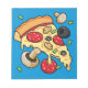 Colorful pop art style slice of pizza with pepperoni, mushrooms, green pepper and olive toppings.