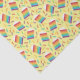 Add some color to gifts with this bright and colorful tissue paper that features a pretty pattern of slices of rainbow layer cake along with festive confetti sprinkles against a light yellow background.